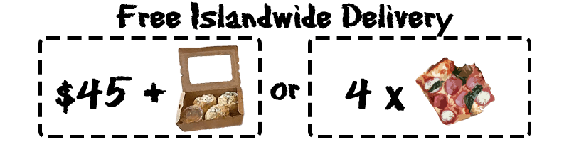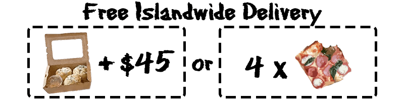 Just a heads up, our pizzas take about 25 minutes to prepare upon order (assuming no queue), but don't worry, we promise they're worth the wait! If you'd like convenience, you can skip the wait by having our pizzas delivered straight to your doorstep with our islandwide delivery service 🙂
