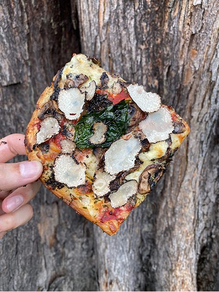 He got so blown away by this kind of pizza that he dedicated lots of his after work hours to perfecting the iconic crispy and fluffy square shaped San Francisco style sourdough pizza! Roy even went so far as to procure a 100 year old strain of sourdough culture originating from a San Francisco bakery, which he thinks gives the pizza an unmatched robust and sublime flavour! Of course, our pizza is crispy and fluffy when freshly baked, but if you keep it sitting around for too long, we highly recommend toasting it before consumption to achieve that authentic San Francisco taste 🙂
