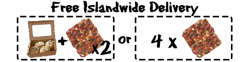 Just a heads up, our pizzas take about 25 minutes to prepare upon order (assuming no queue), but don't worry, we promise they're worth the wait! If you'd like convenience, you can skip the wait by having our pizzas delivered straight to your doorstep with our islandwide delivery service 🙂